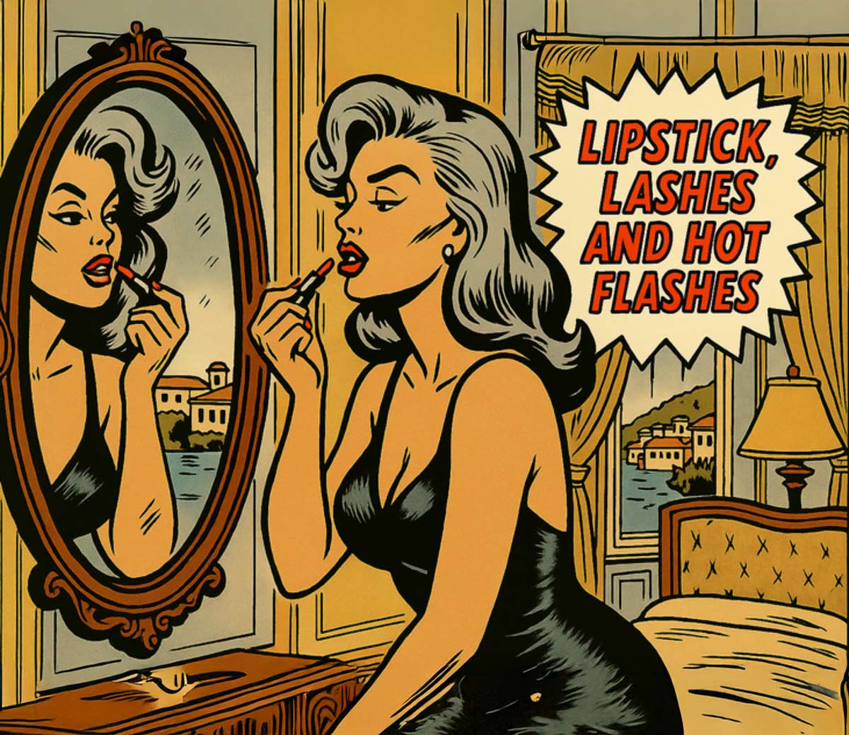 Here at Hot Flash Muse, we live by these words because they say it all: we don’t always feel like our best selves, but we keep showing up. We swipe on the lipstick, curl the lashes, and smile through the sweat. Because midlife isn’t about perfection, it’s about persistence (and maybe a little Pinot?).